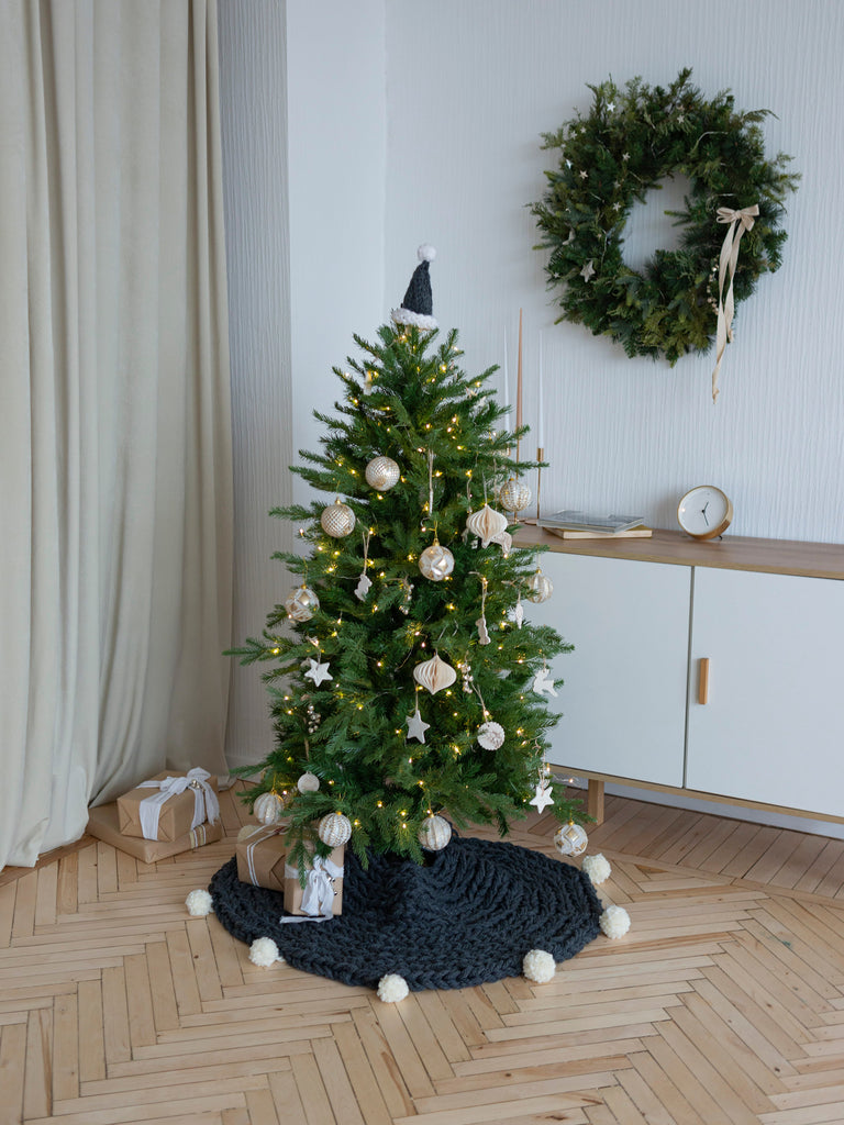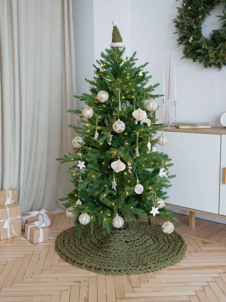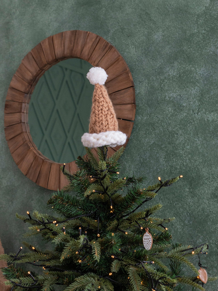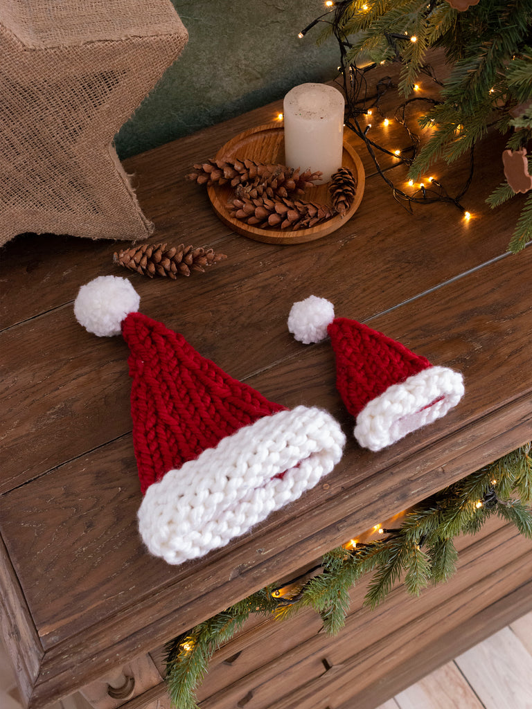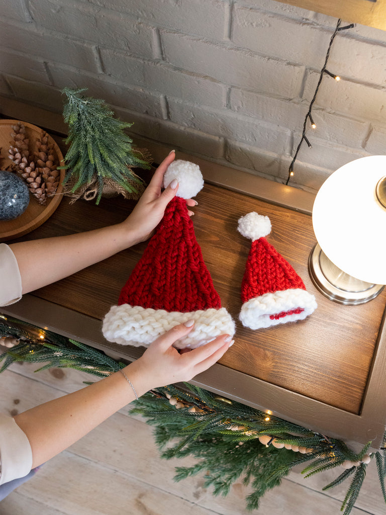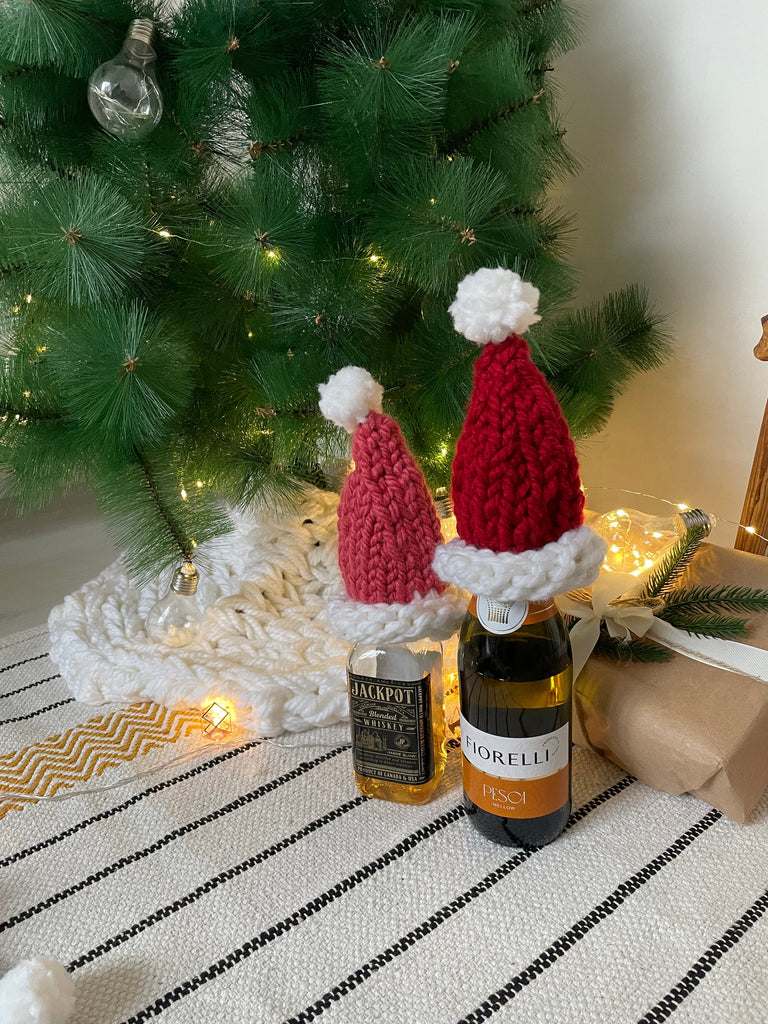 Шапки крупної в'язки прикрасять вашу ялинку , а також можуть бути використані як топпер для пляшок.