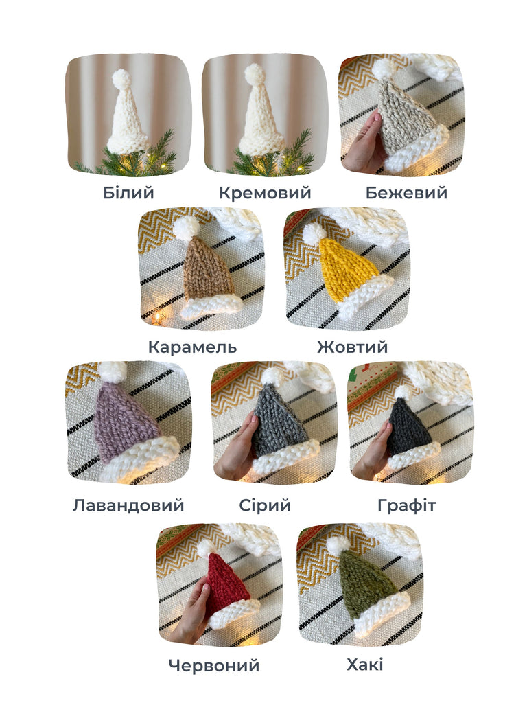 Мініатюрна шапочка Санти на ялинку у різних кольорах
