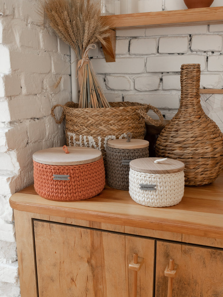 Кошики: 100% перероблений бавовняний шнур, сертифікований за стандартом STANDARD 100 by OEKO-TEX®