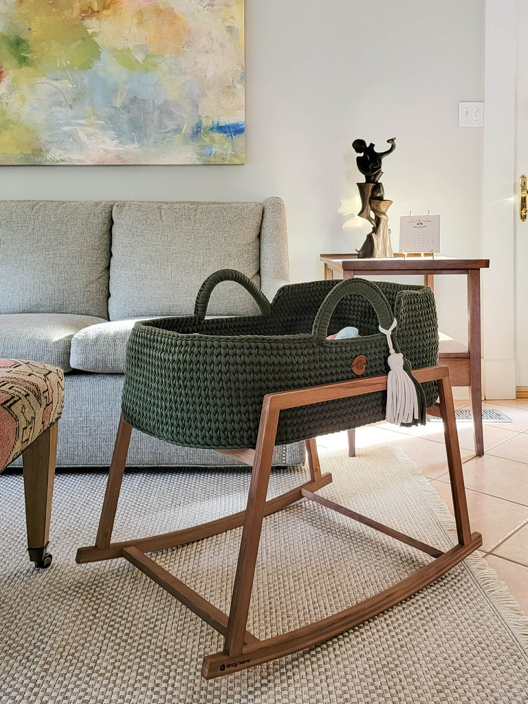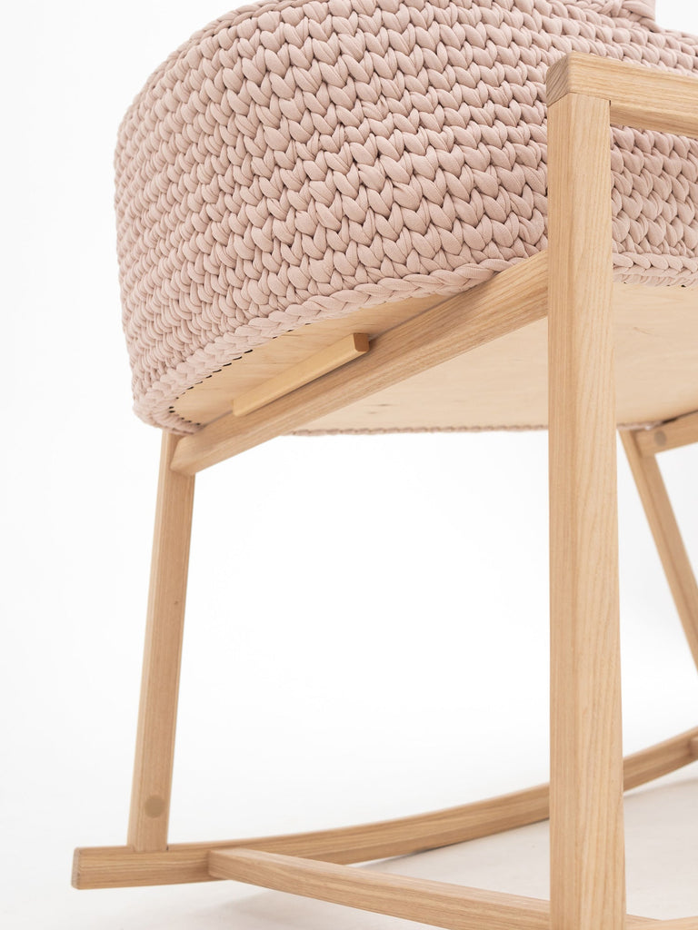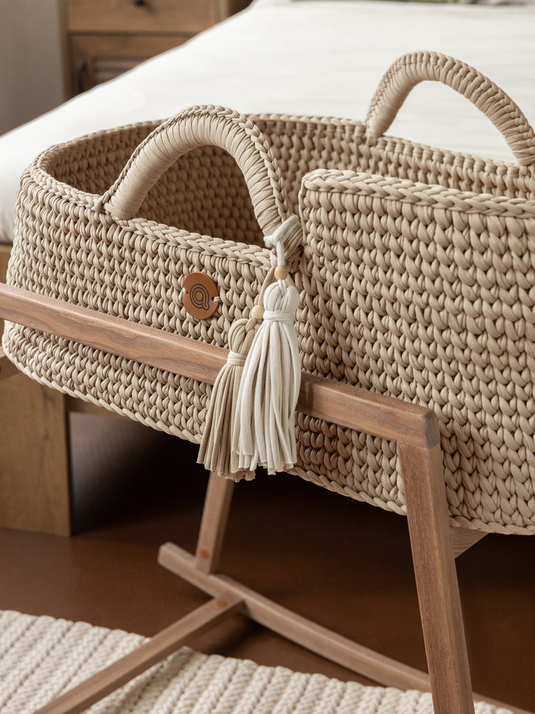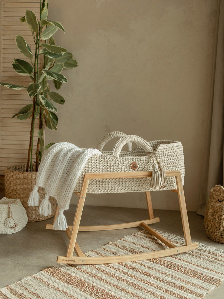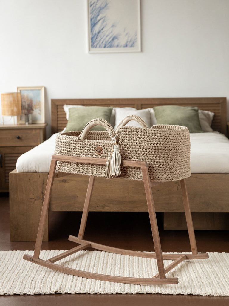 Дозволяється тільки ручне чищення з використанням дитячих засобів для прання. Не рекомендується терти жорсткими губками, щоб уникнути пошкодження тканини. Уникайте прямого потрапляння води на дерев'яні елементи.