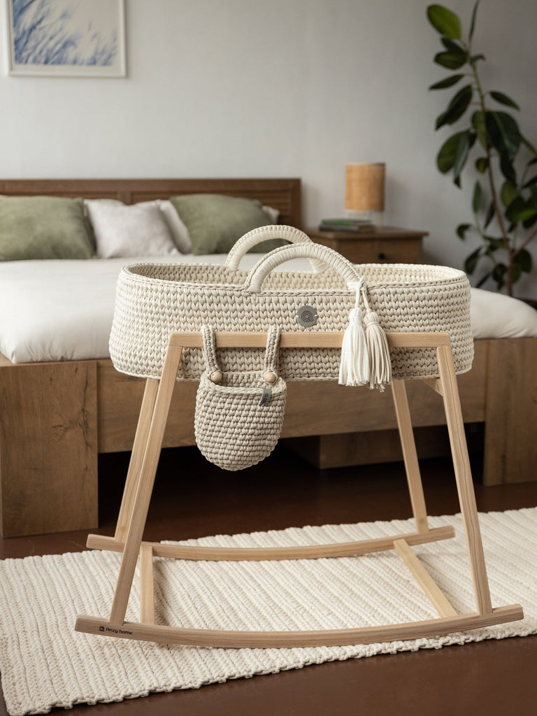 З підставкою-гойдалкою від Anzy Home люльку можна розмістити біля ліжка в спальні або легко переносити з кімнати в кімнату, щоб весь час наглядати за дитиною.
